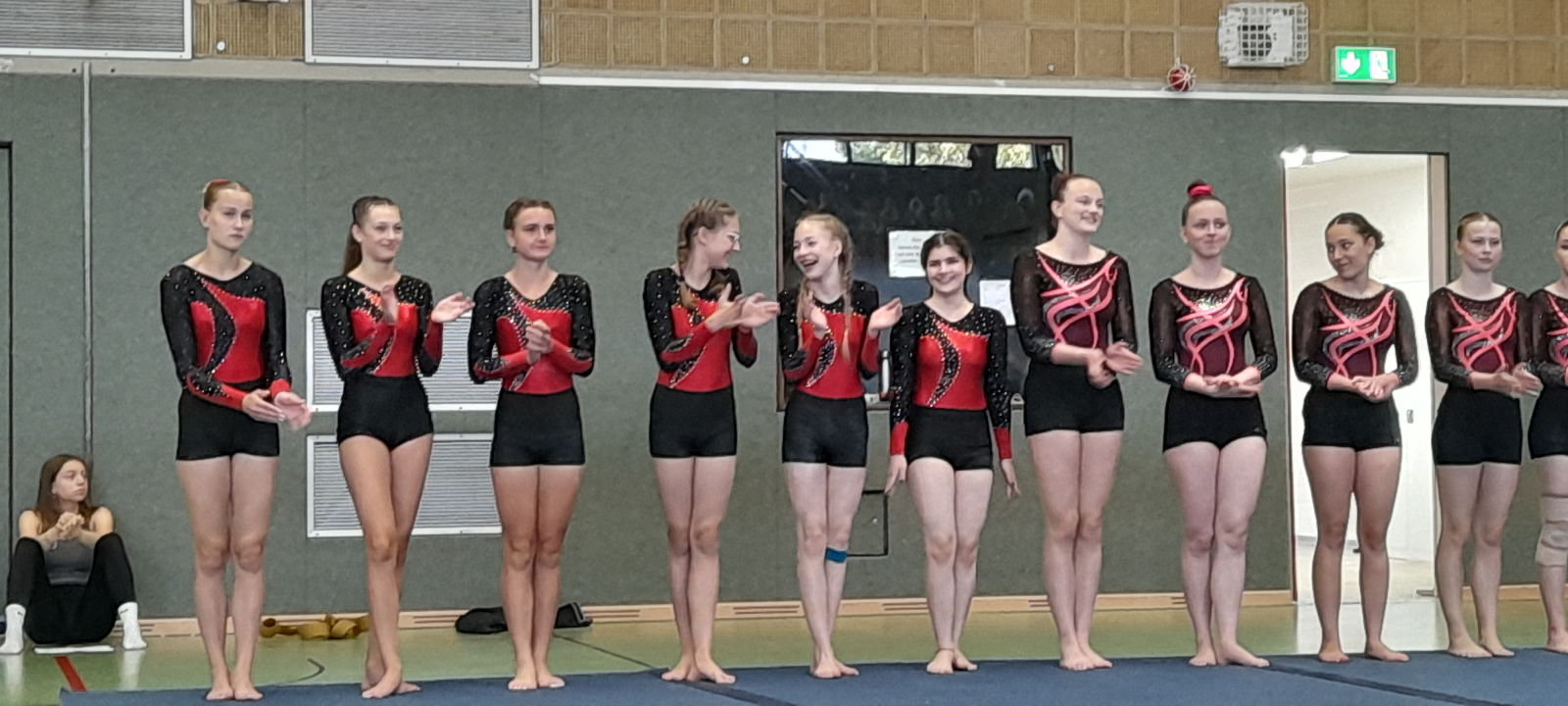 In den Pflichtstufen der P4 traten wie im letzten Jahr gleich 2 Teams an und Team KSV Auedamm 2 mit Nora, Anieke, Ayla, Sophie, Mila und Alexandra setzte sich mit 211,15 Punkten klar gegen die Konkurrenz durch und gewann