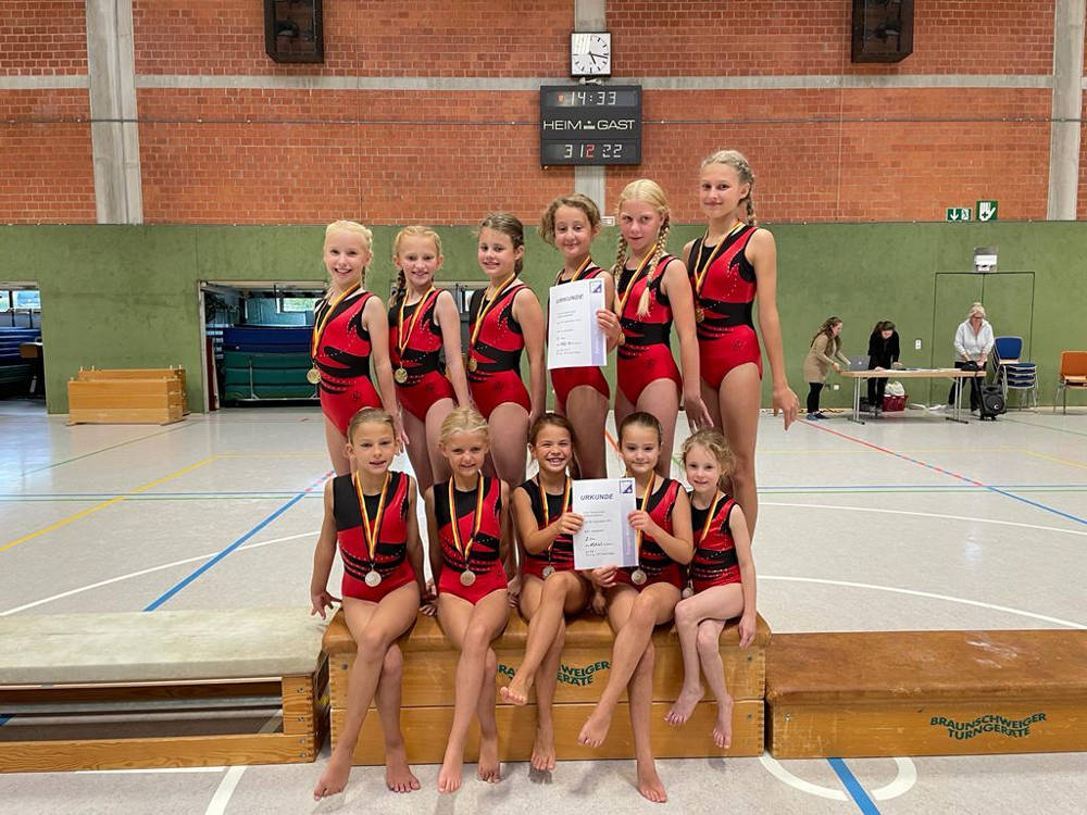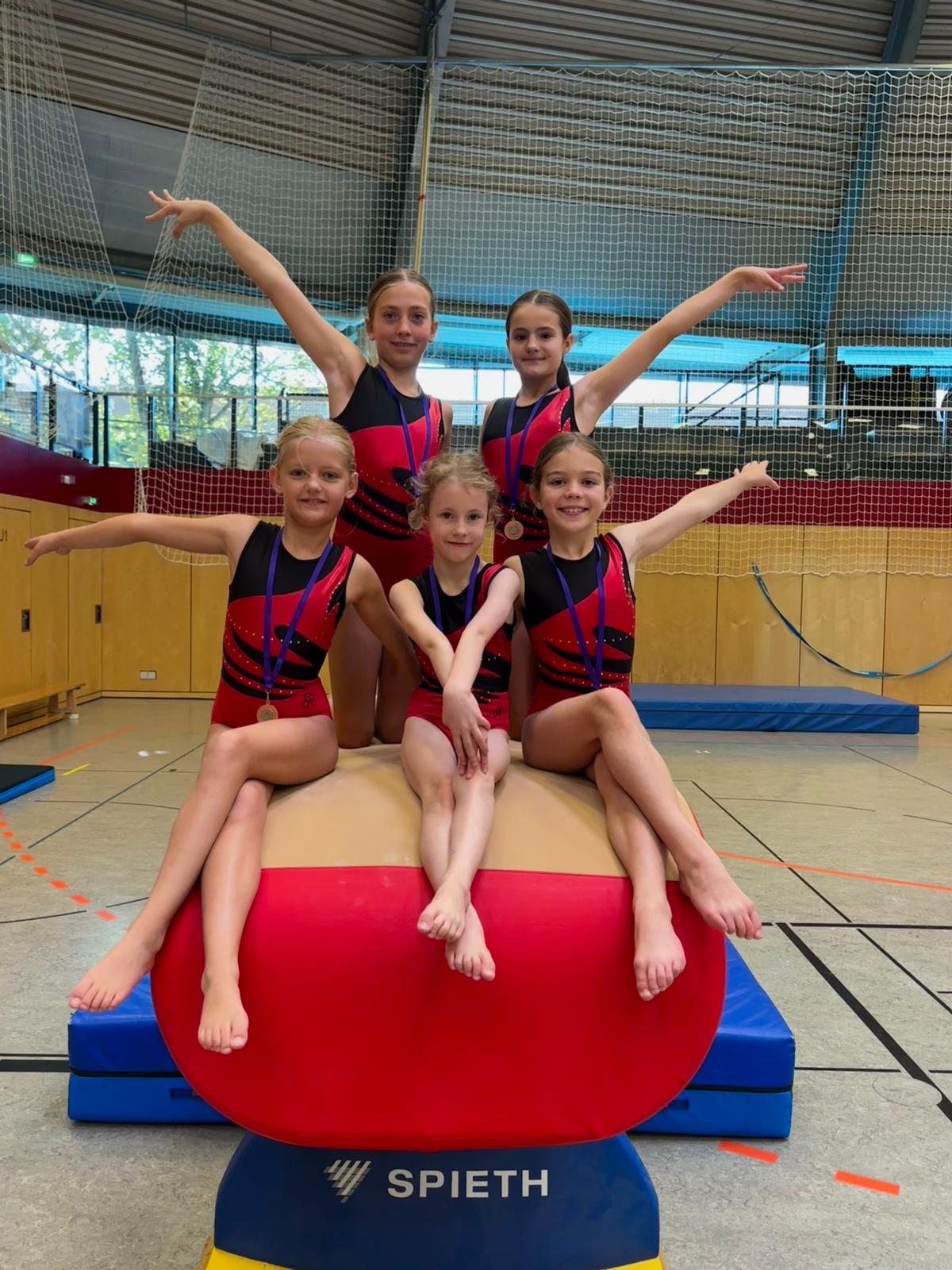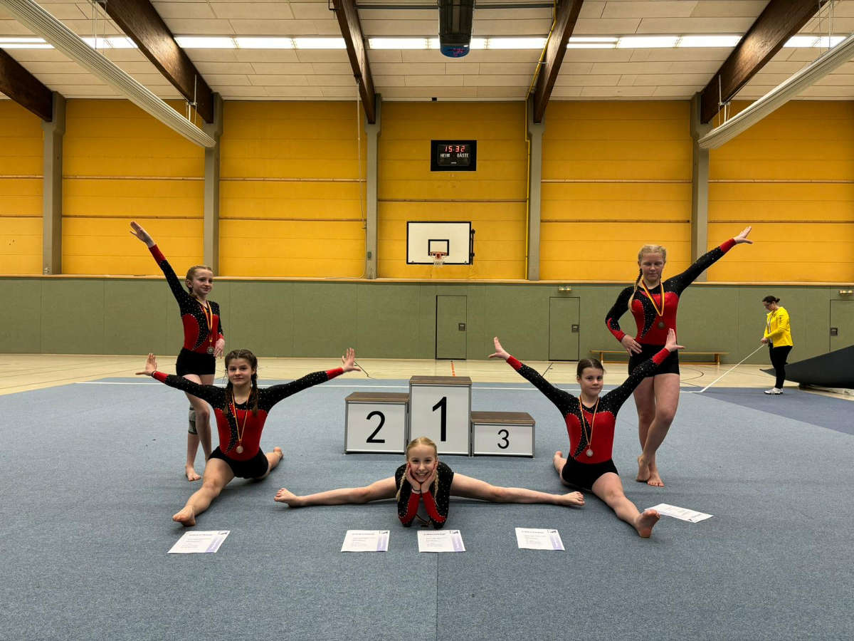 In der P5 (2012 und jünger) starten Sina, Tomke, Fritzi, Sophia und Aenna und das Quintett dominierte den Wettkampf an allen Geräten. Am Ende siegten sie klar mit 10 Punkten Vorsprung. Tomke gewann die Einzelwertung knapp vor Sina, es folgten Fritzi auf Platz 5, Sophia auf Platz 6 und Aenna auf Platz 8.