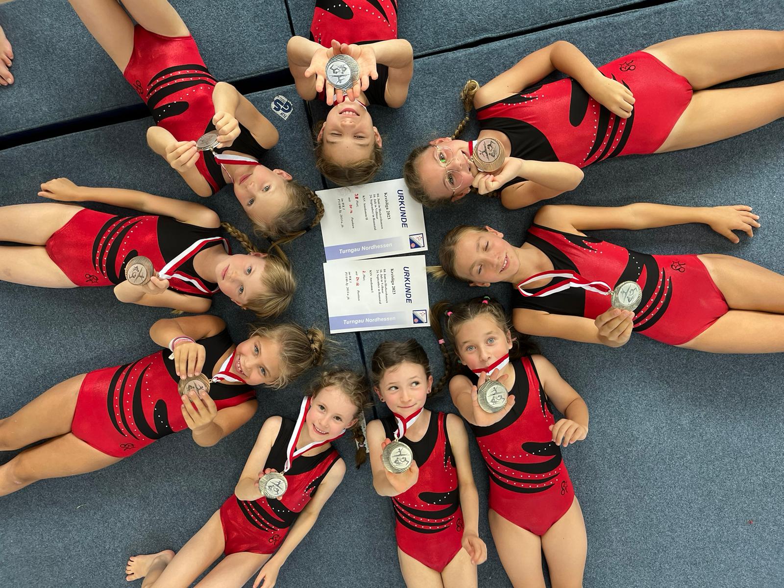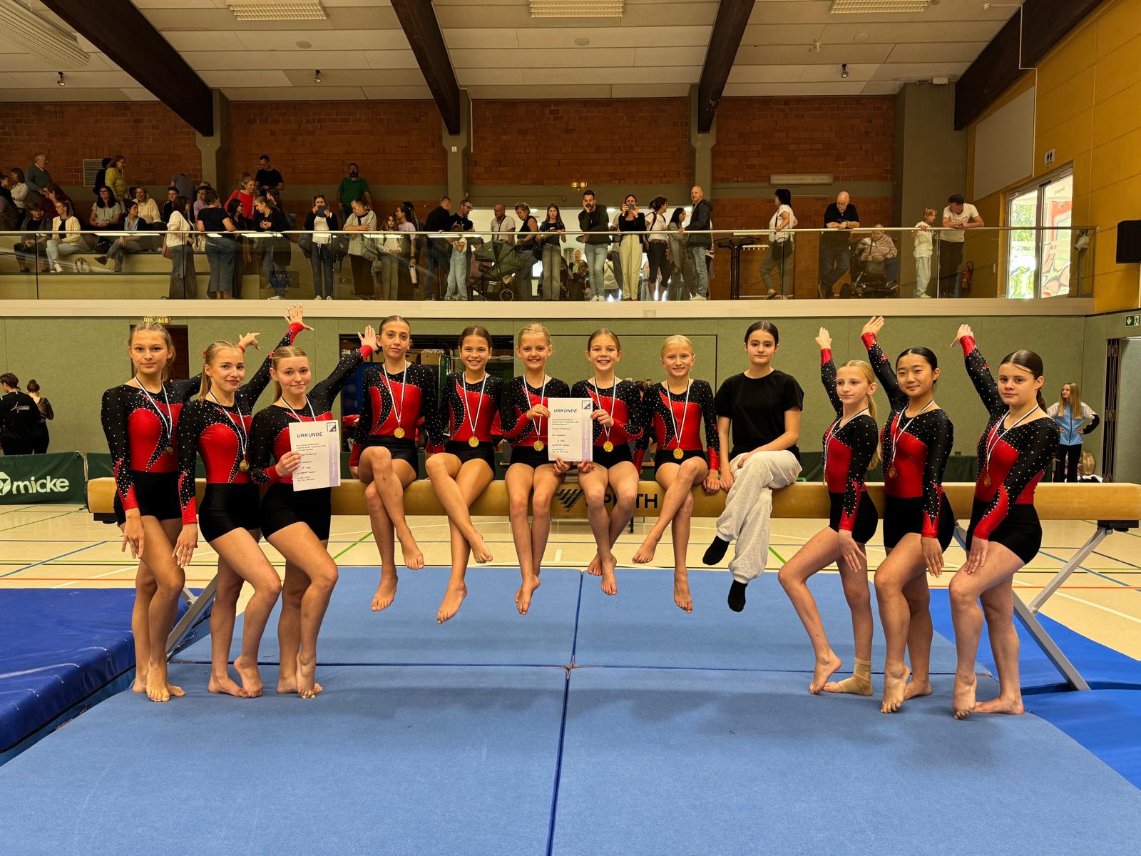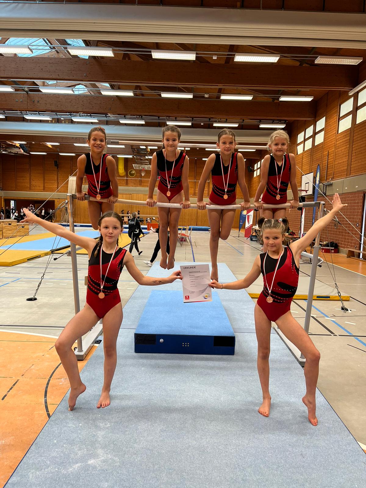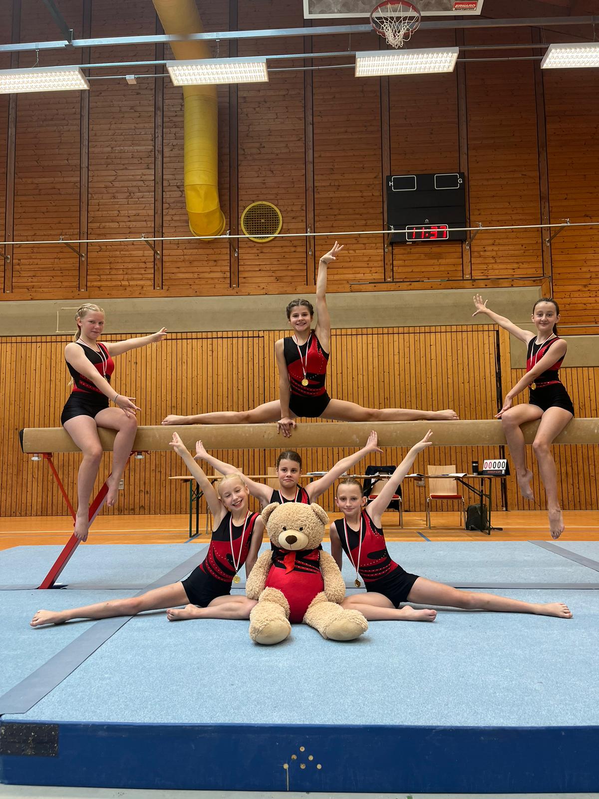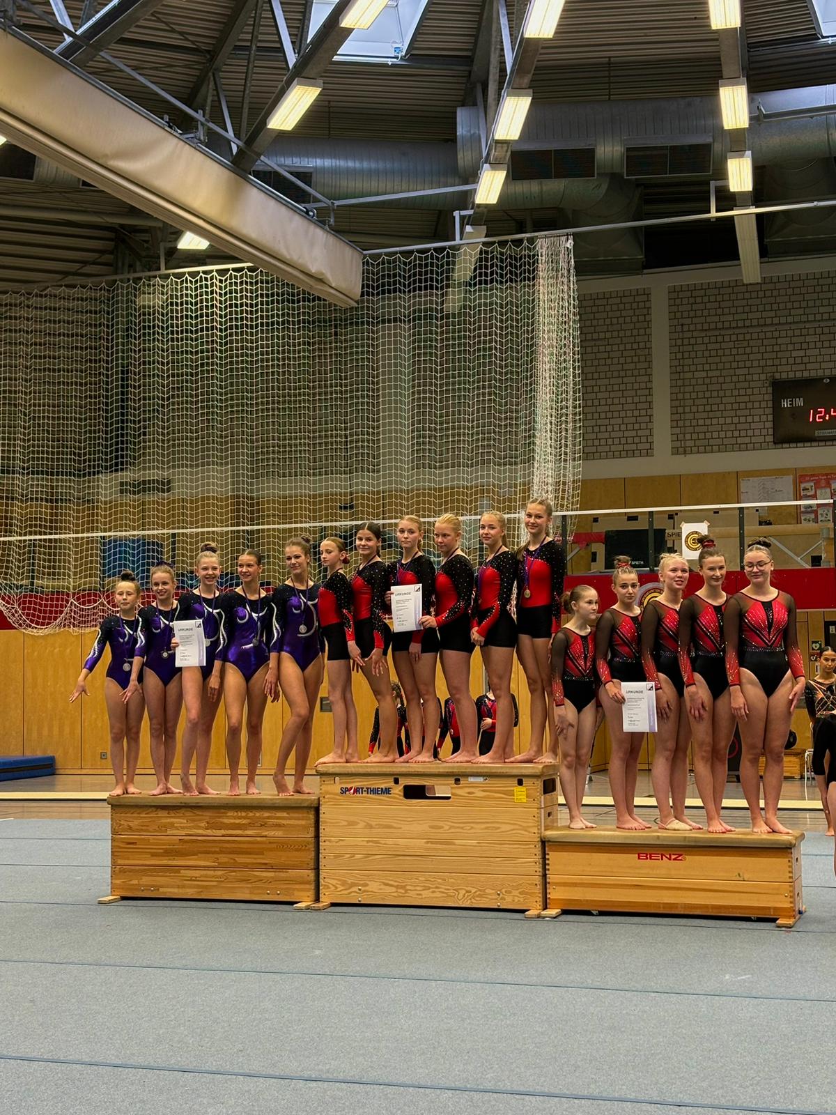 Dem Team der LK 4 (2010 und jünger, eine ältere Turnerin erlaubt) mit Marie, Hanne, Lara, Malina, Elisa und Mina gelang ein perfekter Start in die Saison und die Turnerinnen holten sich ungefährdet mit 5 Punkten Vorsprung den Sieg. Mit Mina (1.), Marie (3.), Hanne (6.) und Malina (9.) turnten sich gleich vier der Mädchen unter die Top Ten.
