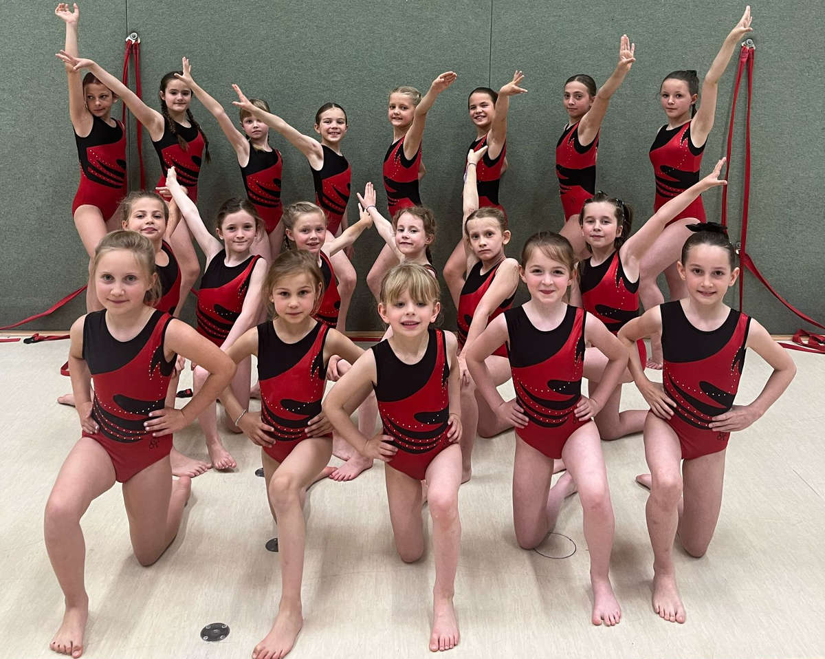 Unsere Jüngsten traten mit 2 Teams in der P4 an und Nora, Anieke, Ayla, Sophie, Mila und Ella erturnten sich mit 156,70 Punkten ungefährdet den Gaumeistertitel. Team 2 mit Alexandra, Sophia, Berta und Andy sicherten sich mit 145,10 Punkten den fünften Rang.