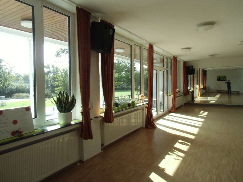 Unser Vereinsheim liegt direkt an der Fulda in der Nähe vom Auebad. Es ist daher gut mit dem Bus erreichbar, Parkplätze sind sowohl am Auedamm als auch auf dem Vereinsgrundstück vorhanden. Für Outdoorsport ist ein direkter Zugang zur Aue vom Vereinsheim möglich, weiter steht das Vereinsgelände zur Verfügung. Im Clubhaus befinden sich 2 kleine Umkleiden und unser Sportsaal mit Fuldblick. Der Saal hat Parkettboden und eine große Spiegelwand. Matten und viele Kleingeräte sind vorhanden.