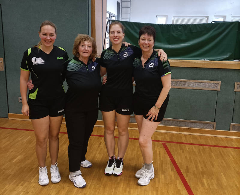 Die 1. Damenmannschaft Gruppe Nord-Mitte dominierte in starker Besetzung das Turnier und erspielte einen hohen Sieg gegen Rennertehausen.: Von links nach rechts : Tabea, Margret, Julia, Heike. Besonders erfolgreich war Margret Söthe, die zudem bei den TT - Finals in Erfurt in der Altersklasse Ü70 den 2. Platz belegte und somit Deutsche Vizemeisterin wurde.