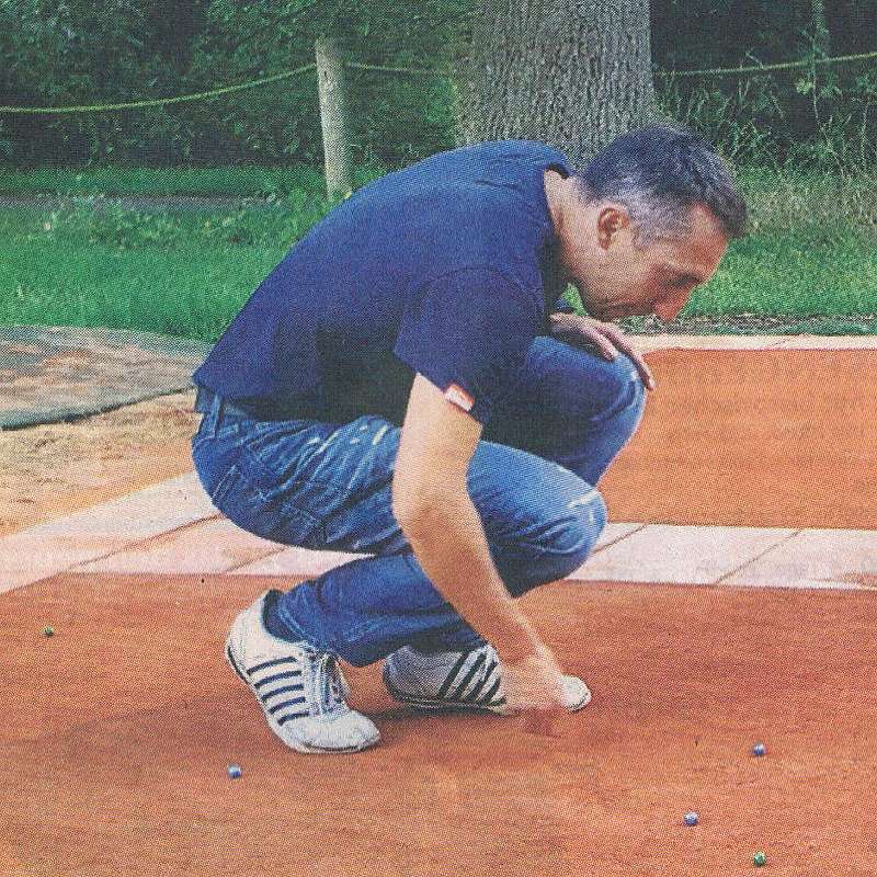 Eine Mannschaft besteht aus vier Spielern. Zwei jeweils gegnerische Spieler werfen nacheinander eine Murmel auf einer Bahn in Richtung Loch. Dieses befindet sich im hinteren Drittel. Dabei muss die Wurflänge beim Anspiel mindestens zwei Meter betragen. Wer näher am Loch ist oder sogar schon eingelocht hat, darf beginnen. Jeder hat drei Murmeln. Gewinner ist, wer die letzte Kugel ins Loch bringt. Dafür erhält die Mannschaft einen Punkt.